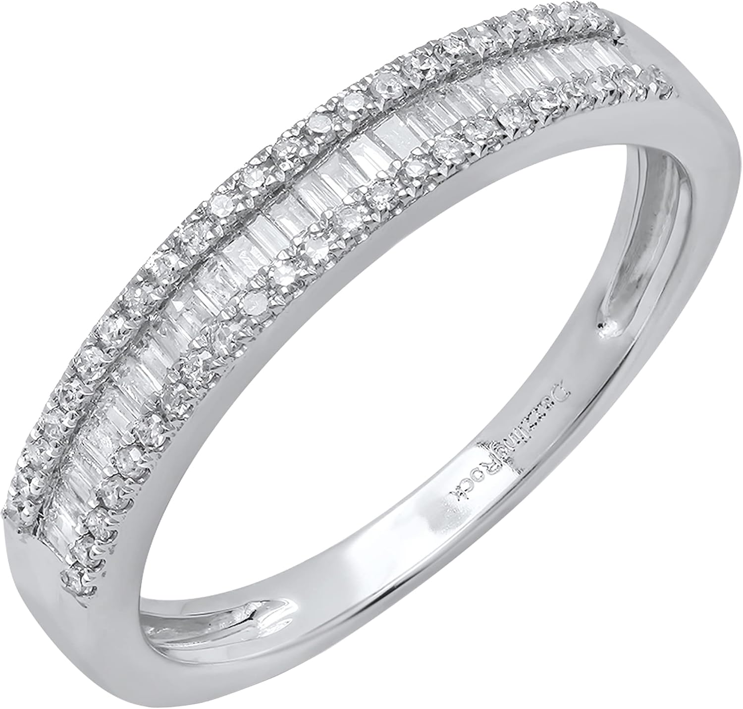 Dazzlingrock Collection Valentine's Day Gift 0.30 Ctw 10K Real Solid Gold Round & Baguette Natural Diamond Women Anniversary Wedding Band