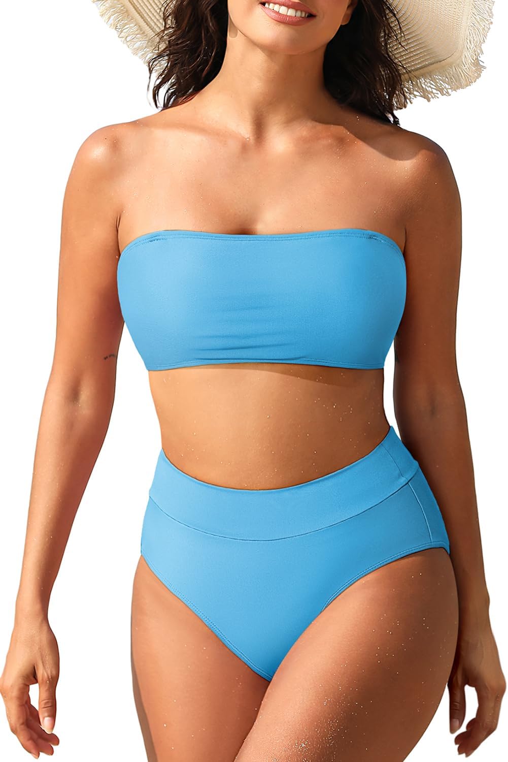 Pink Queen Women's High Waist Bikini Set Removable Strap Bandeau Two Piece Swimsuit Bathing Suit