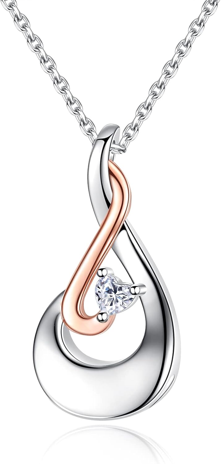 925 Sterling Silver Cremation Jewelry for Ashes Teardrop Urn Necklace for Ashes with Heart-Shape CZ Memorial Keepsakes Pendant Necklace for Women(White-April)