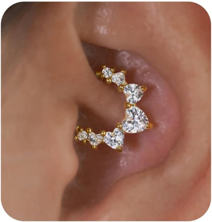 Cartilage Daith Earrings For Women Small 14K Gold Plated Hoop Hypoallergenic Helix Piercing Huggie Surgical Steel Diamond Implant Cubic Zirconia Jewelry