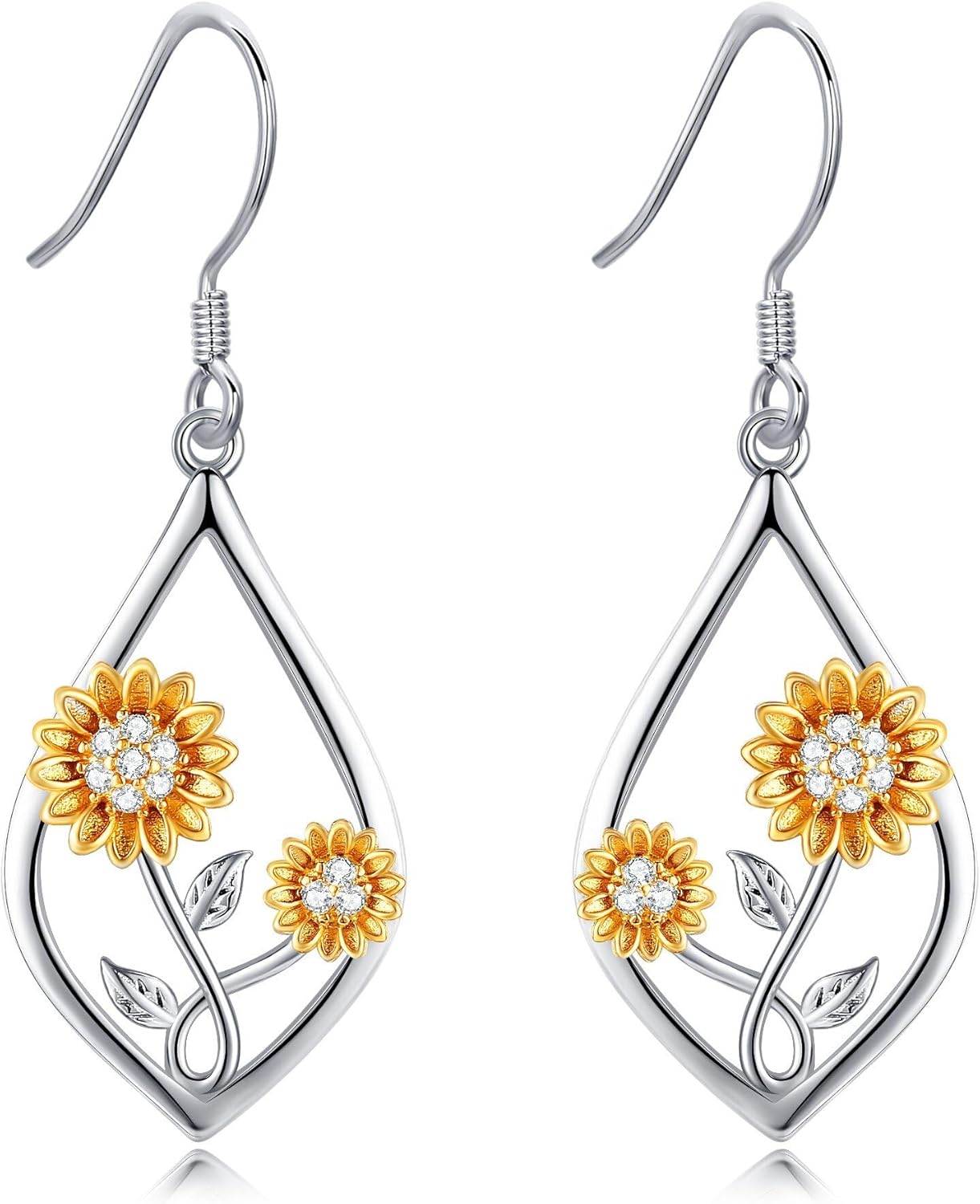 Sunflower/Daisy/Clover/Dandelion/Palm Tree/Cactus Earrings 925 Sterling Silver Flower Teardrop Dangle Drop Earring Floral Jewelry Gifts for Women