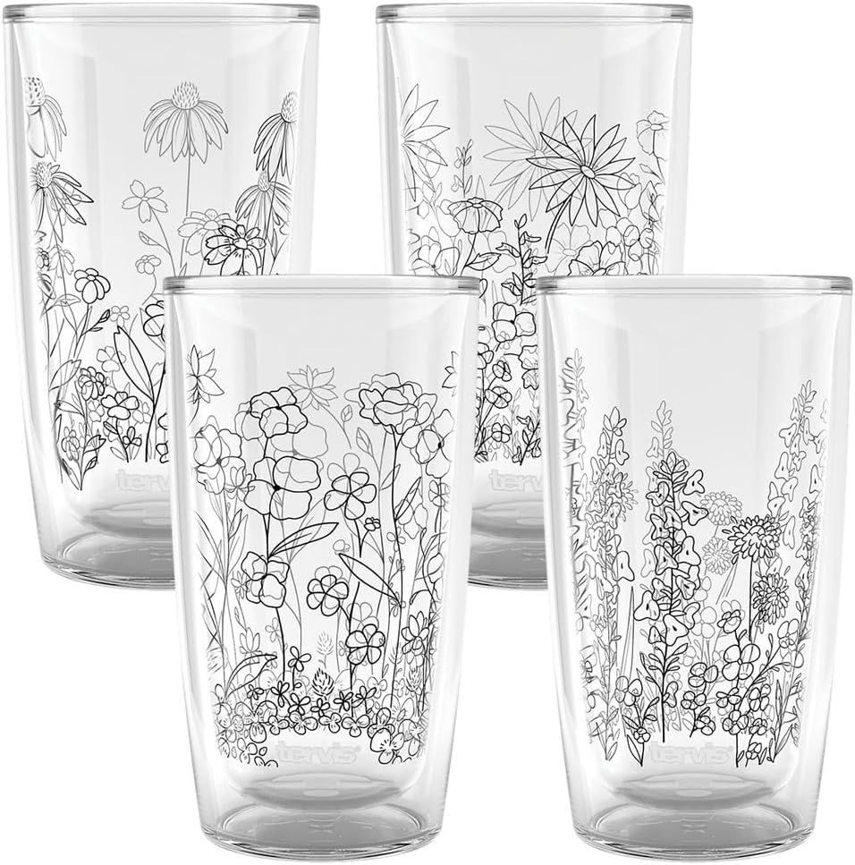 Tervis Wildflower Crystal Collection Made in USA Double Walled Insulated Tumbler Travel Cup Keeps Drinks Cold & Hot, 16oz - 4pk, Assorted