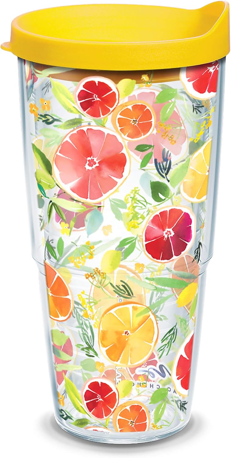 Tervis Yao Cheng - Citrus Made in USA Double Walled Insulated Tumbler Travel Cup Keeps Drinks Cold & Hot, 24oz, Classic