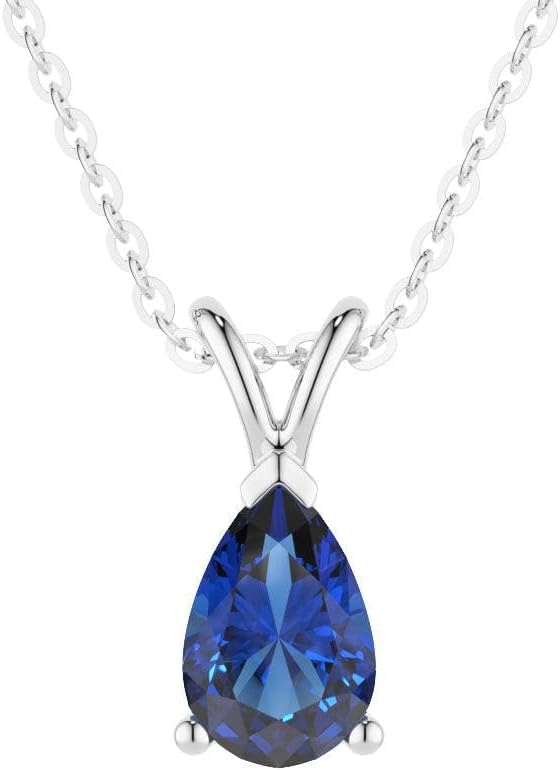 MSBLUE® 1.5ct Pear-Shaped Gemstone Pendant Necklace, 14K White Gold Vermeil, Valentines Day Gifts for Her
