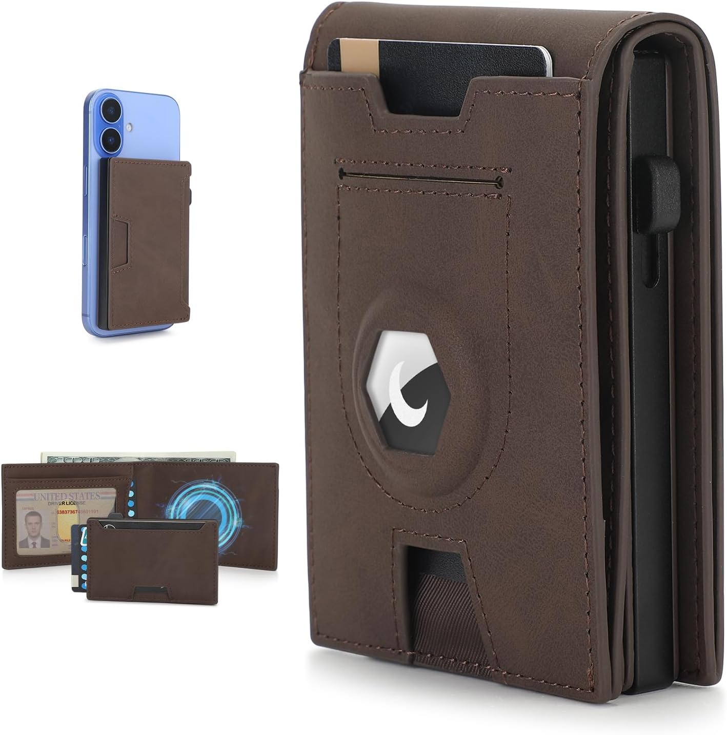 - 2-in-1 Airtag Wallet:Combines a slim RFID blocking bifold wallet with a detachable magnetic Pop-Up Card Holder that's MagSafe compatible. Use them together or separately – the card holder works as a minimalist wallet for iPhone, while the bifold includes a cash slot and ID window.