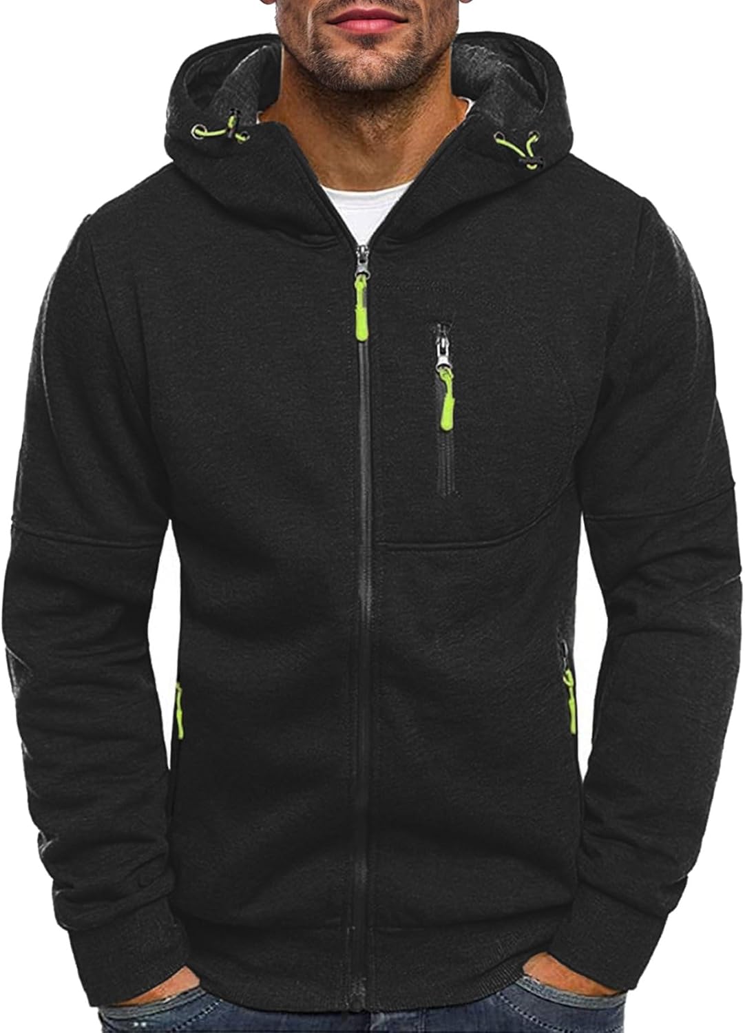 Men's Zip Up Fleece Hoodie Lightweight Sweatshirt Long Sleeve Sports Hooded Jacket with Zipper Pockets