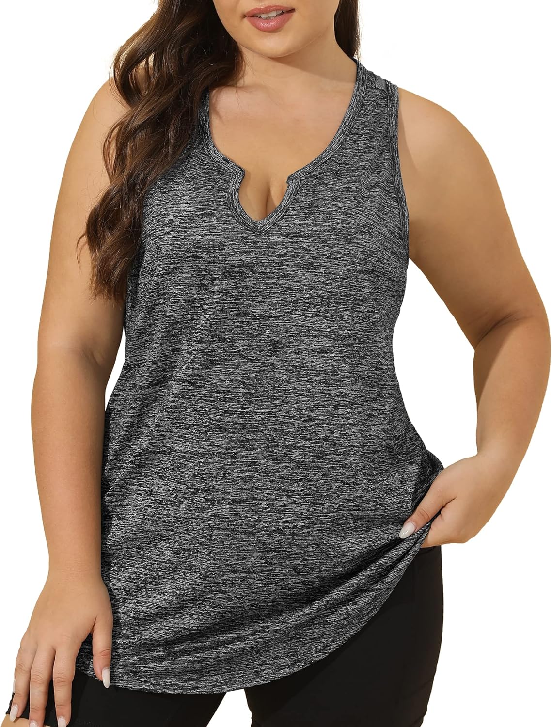 FOREYOND Women' s Plus Size Tank Tops Workout Loose Fit Athletic Tops V Neck Racerback Yoga Gym Shirts Casual Summer