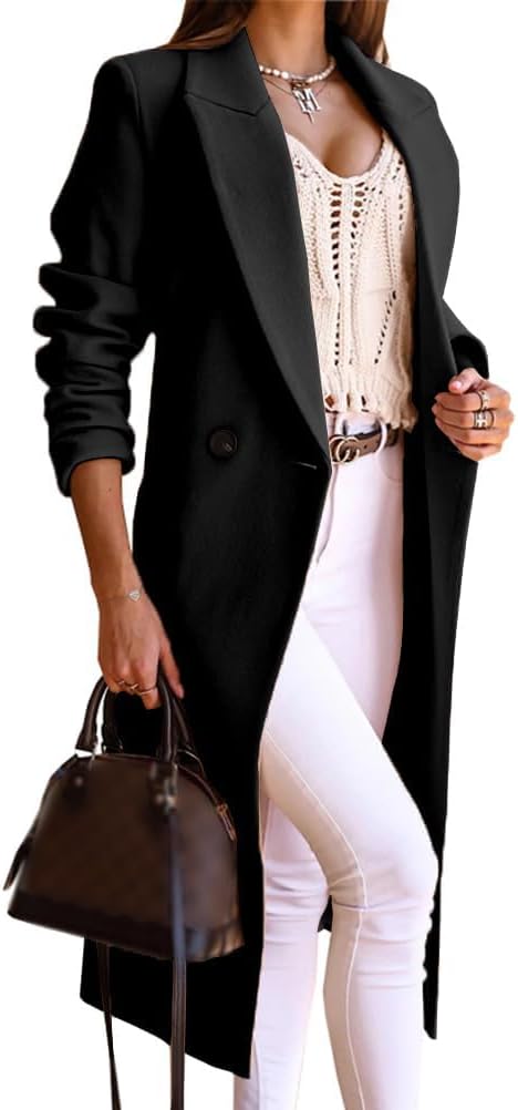 IDEALSANXUN Long Wool Coats for Women Fall Winter Trench Coat Peacoat Double Breasted Blazer Jackets Overcoat