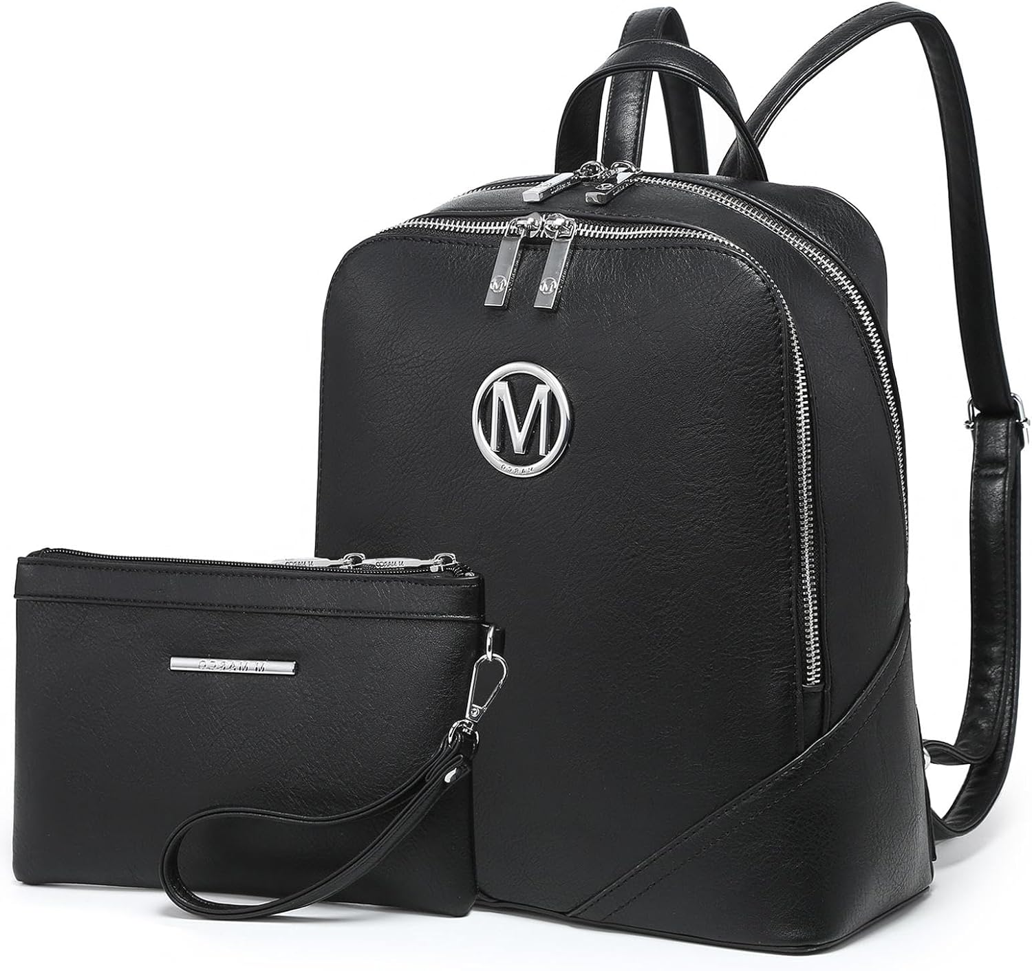 MKP Women Fashion Double Zipper Medium Backpack Purse PU Leather Ladies Travel Shoulder Bag Set 2Pcs