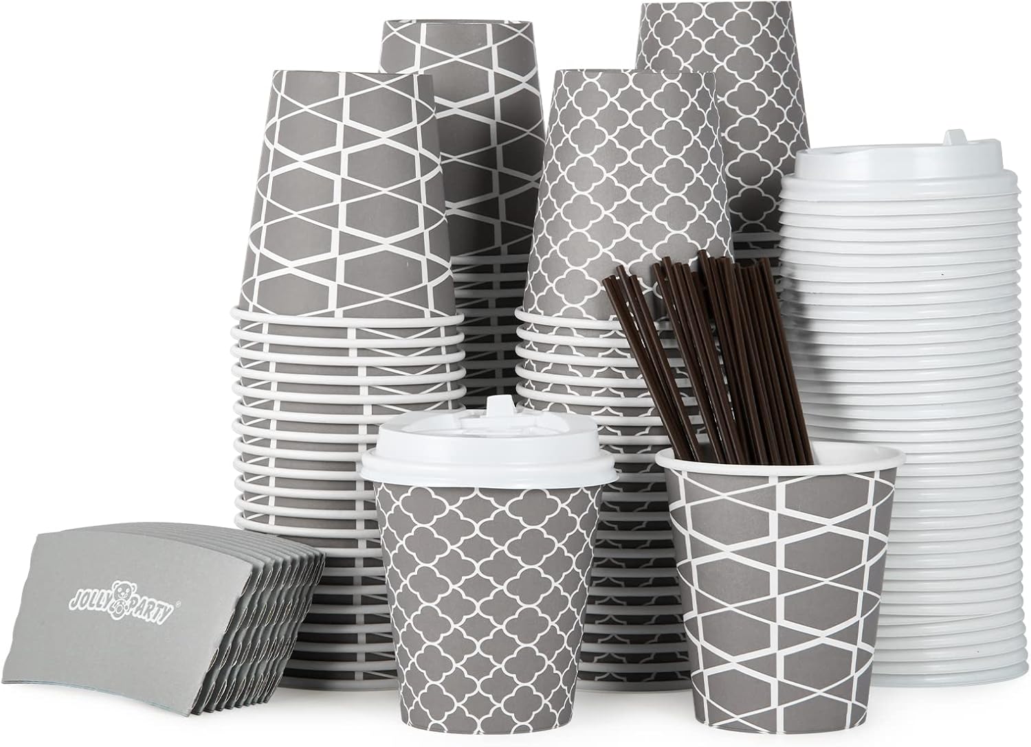 ![JOLLY PARTY [100 Sets] 10 oz Paper Coffee Cups, Disposable Coffee Cups with Lids, Sleeves and Straws, Hot Cold Beverage Drinking Cup for Water or Tea, To-Go Cups Suitable for Office and Travel](https://m.media-amazon.com/images/I/71aTFOx0aFL._AC_SL1500_.jpg)