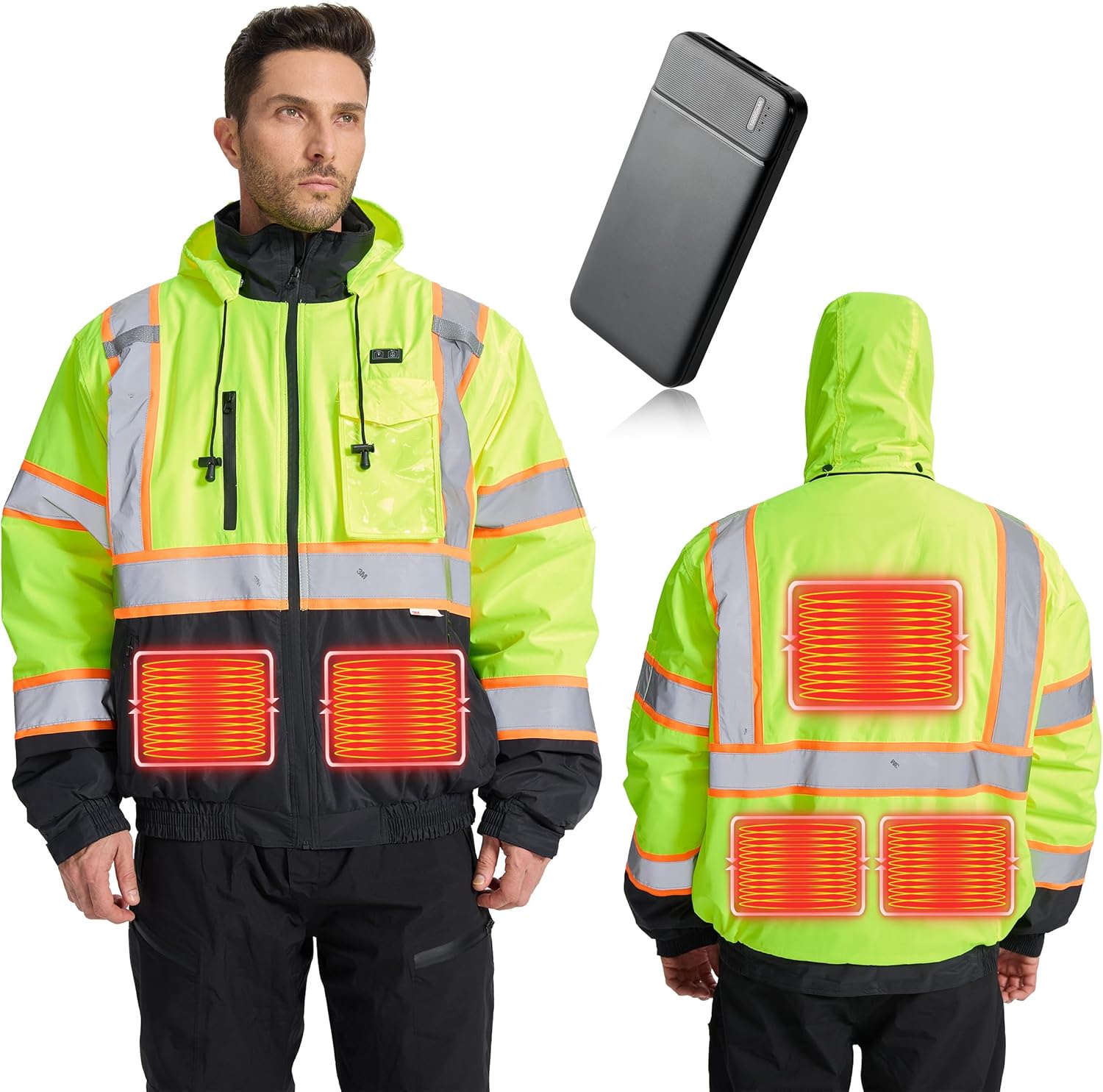 SRsafety Safety Heated Jacket,Waterproof Safety Jacket for Men with Pockets, Reflective High Visibility Safety Jackets
