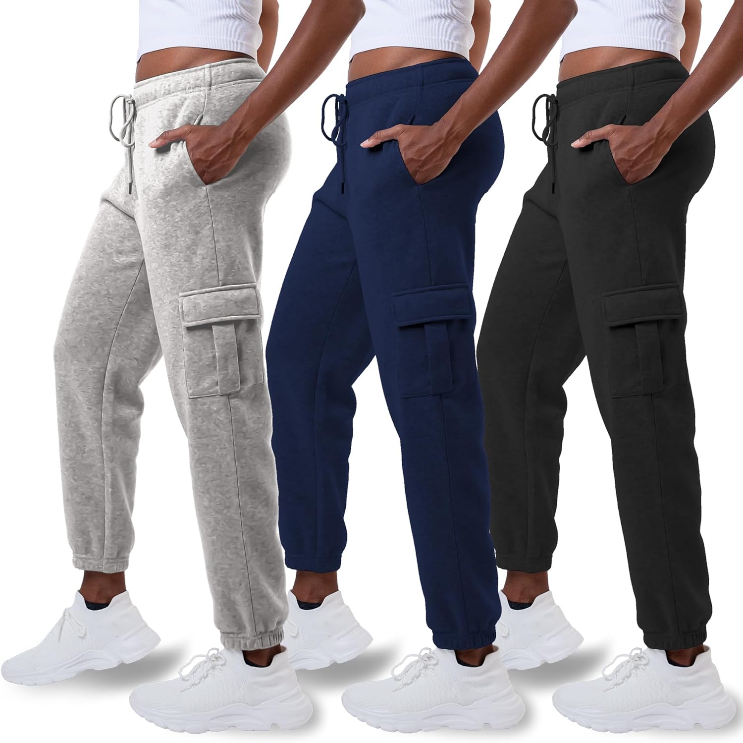 Common Stitch 3 Pack Sweatpants Women, Cargo Womens Sweatpants, Fleece Womens Joggers with Pockets (Available in Plus)