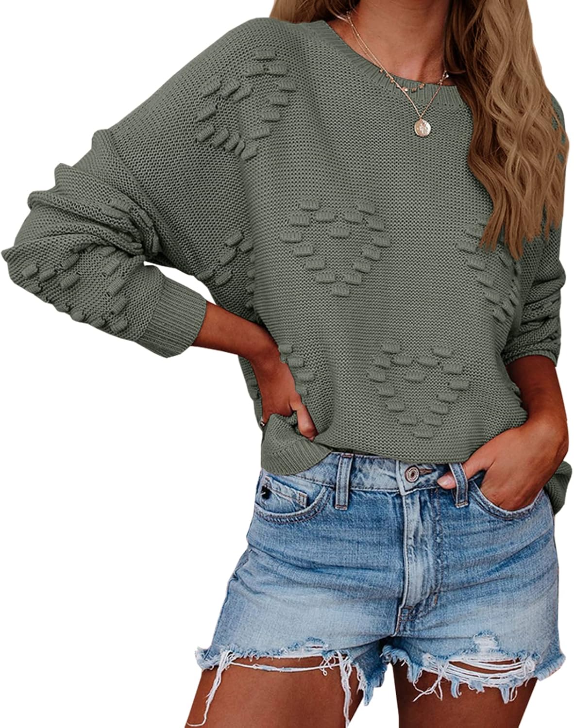 Tutorutor Womens Cute Heart Love Print Valentine Sweater Tops Oversized Crew Neck Dot Ball Loose Knitted Jumper Pullover