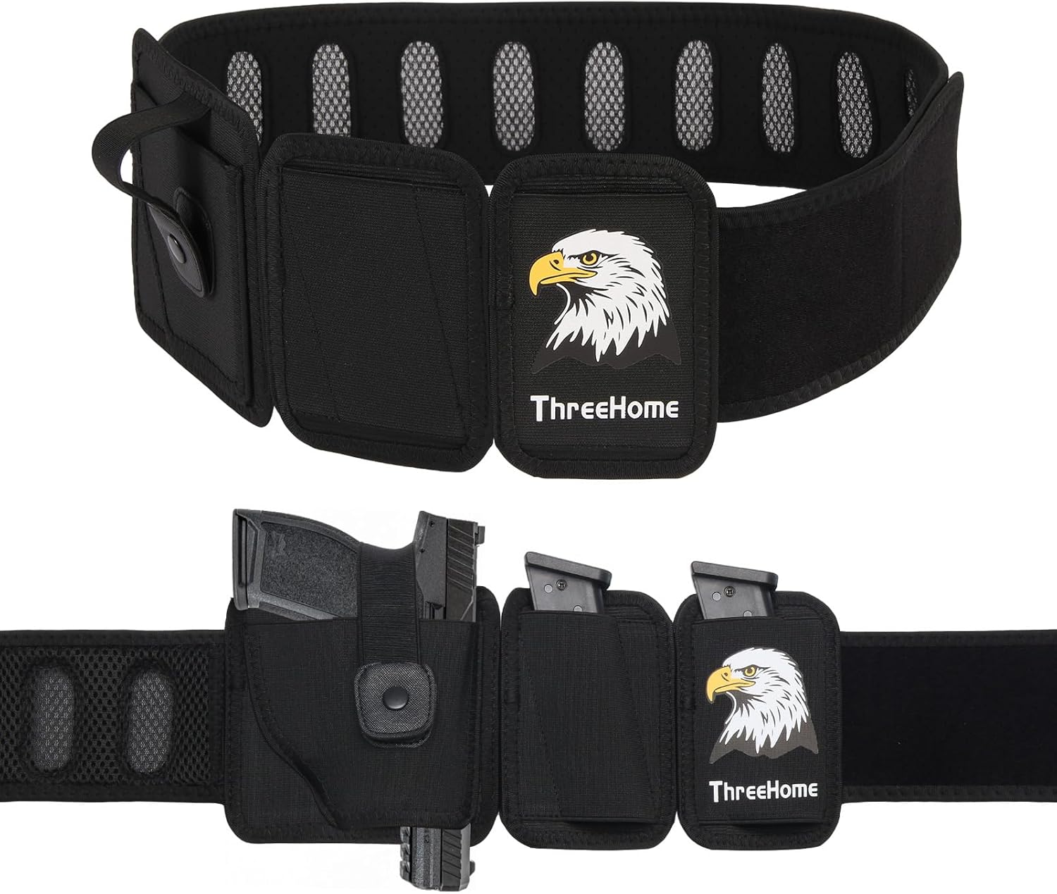 Breathable Belly Band Holster for Carry, Adjustable Elastic Belly Holster for Men & Women, with Two Mag Pouch, Ice Silk Lining, More Vents, Comfortable Holster Belt Fit Glock Taurus Luger