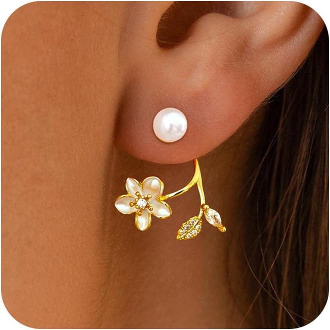 Pearl Earrings for Women, 14k Pearl Drop Dangle Earrings Gold Earrings for Women Trendy Cute Prom Bridal Earring Flower Long Earring Wedding Jewelry