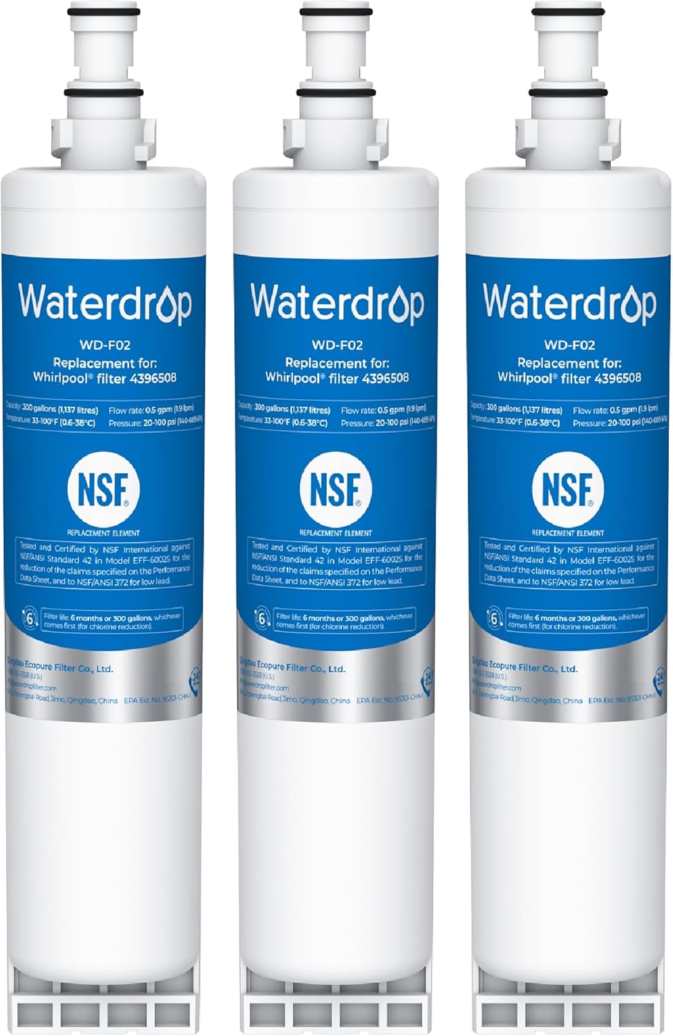 Waterdrop 4396508 Replacement for Everydrop® Filter 5, EDR5RXD1, Whirlpool® WF-NLC240V, 4396510, NLC240V, PNL240V, 4396508p, 4396547, 4392857, LC400V Refrigerator Water Filter, 3-Pack