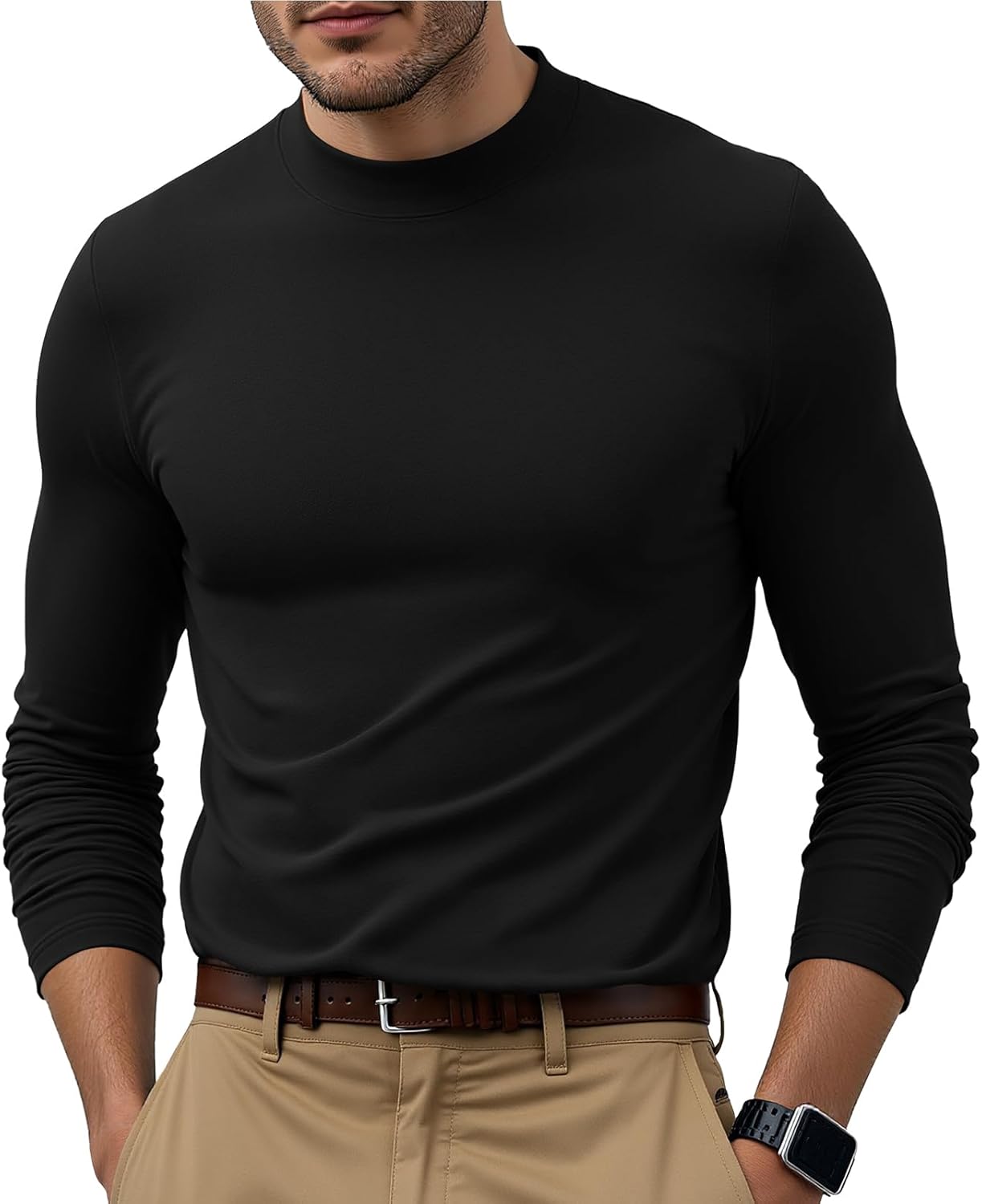 Zengjo Mens Mock Turtleneck Long Sleeve T Shirts Slim-Fit Lightweight Thermal Base Layer Top Soft Stretch