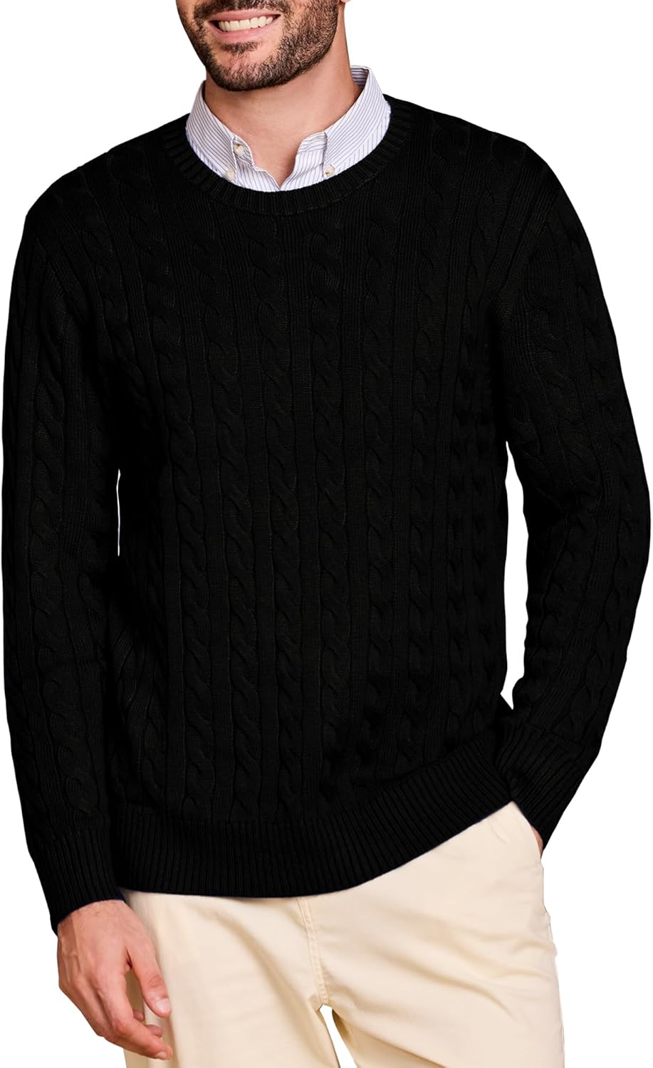 Kallspin Mens Crew Neck Sweater Wool Blend Cable Knit Pullover Top Long Sleeve Knitwear Casual Business Fall Winter Knitwear