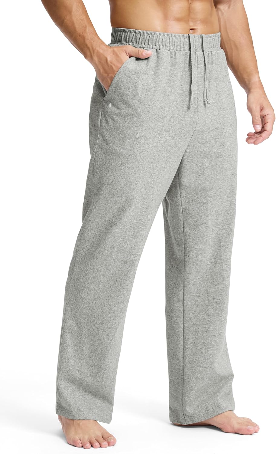 Soothfeel Men's Cotton Sweatpants with Zipper Pockets Open Bottom Yoga Pants Straight Leg Casual Athletic Lounge Sweat Pants, Light Grey S