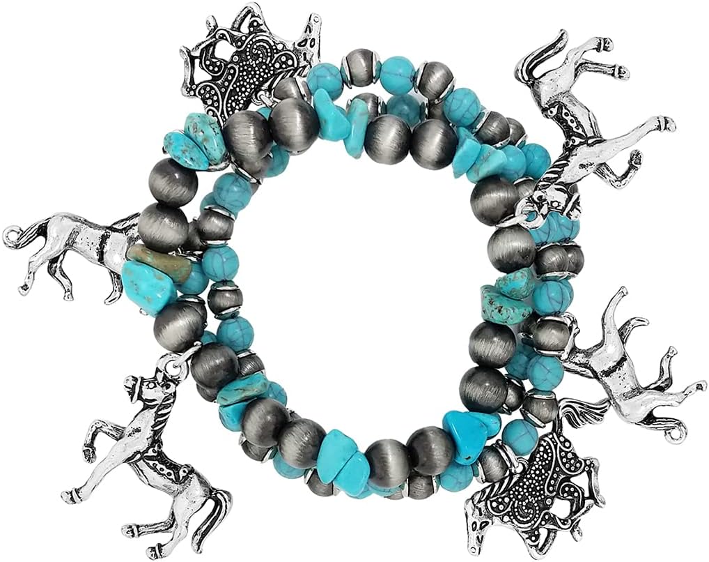Rosemarie & Jubalee Women's Set of 3 Western Metallic Bead And Howlite Stone Stretch Bracelets, 6.75"