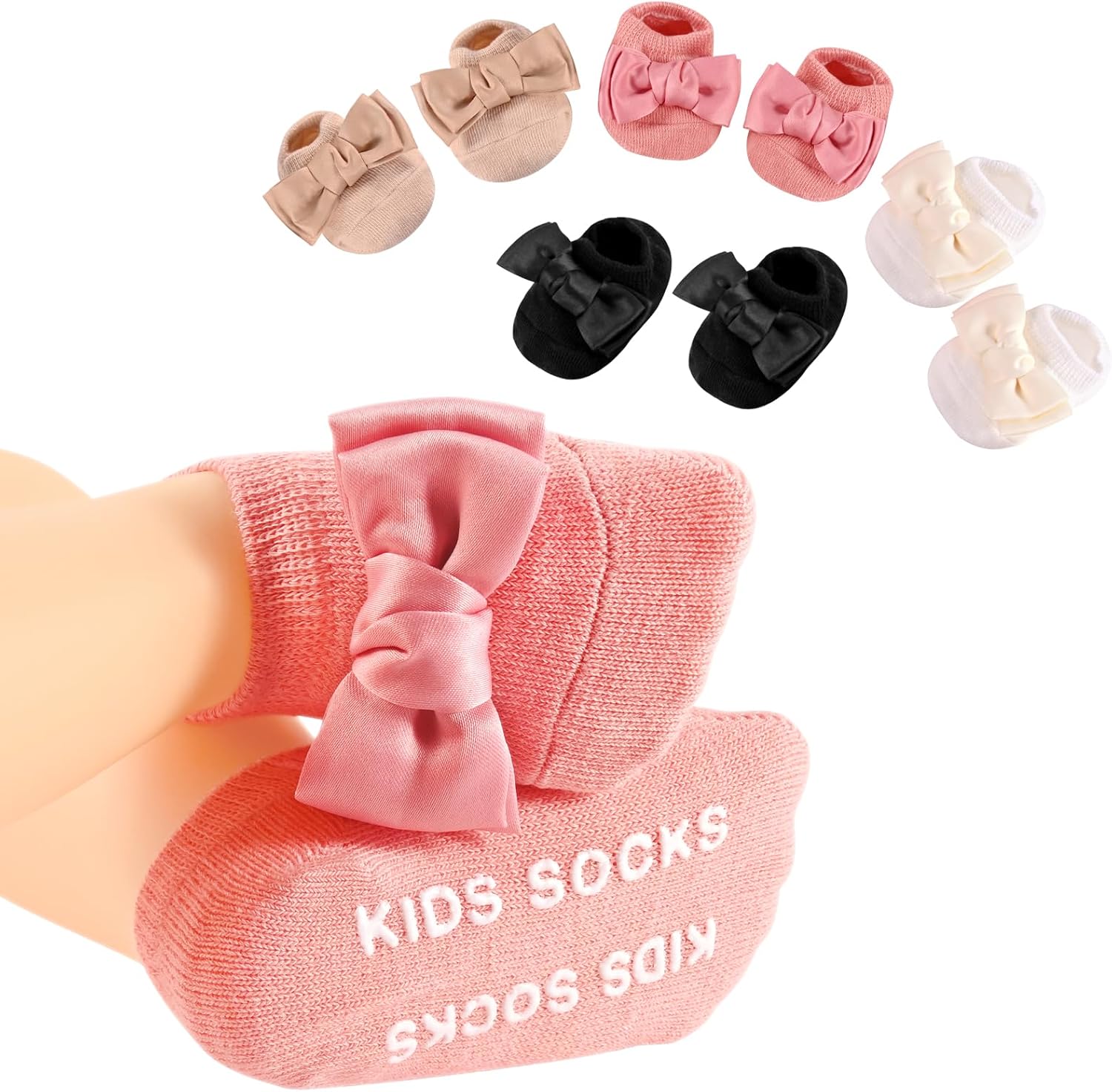 SAOROPEB 4-Pair Baby Girls Socks, Non-Slip Grips for Babies Toddler, Ankle Socks for Girls