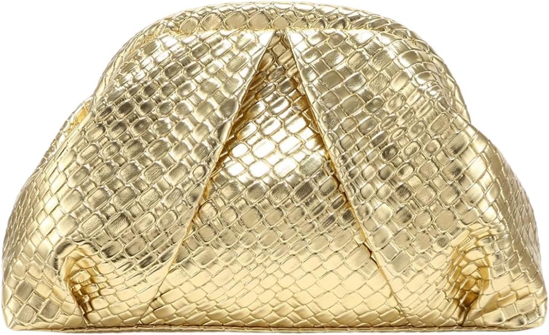 OYOANGLE Women's Minimalist Woven Leather Clutch Purses Textured Kiss Lock Pleated Vintage Evening Handbags