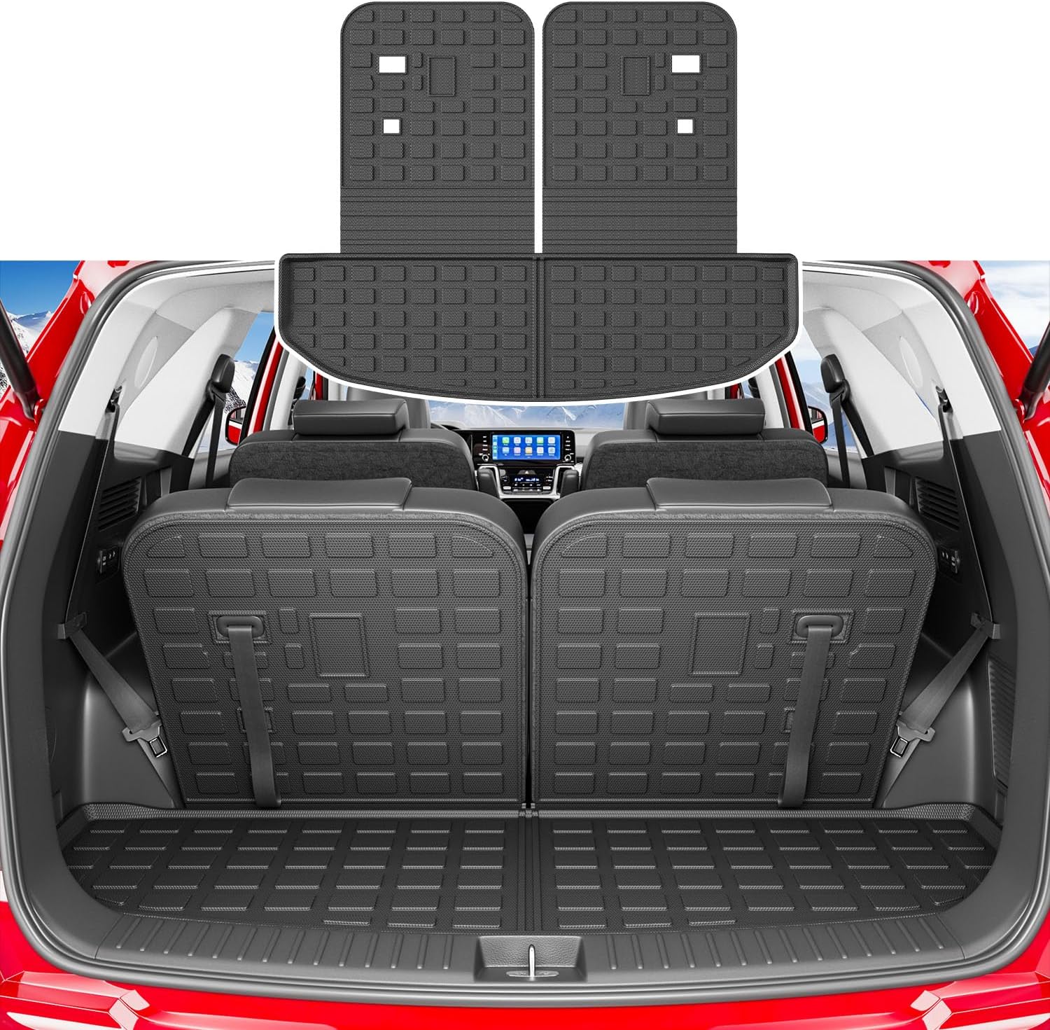- 【Perfect Fitment】 Designed from the original vehicle data, our cargo mat with backrest mat is compatible with 2021 2022 2023 2024 2025 2026 Kia Sorento & Sorento Hybrid & Sorento Plug-in Hybrid. Please check your car model carefully before buying it.