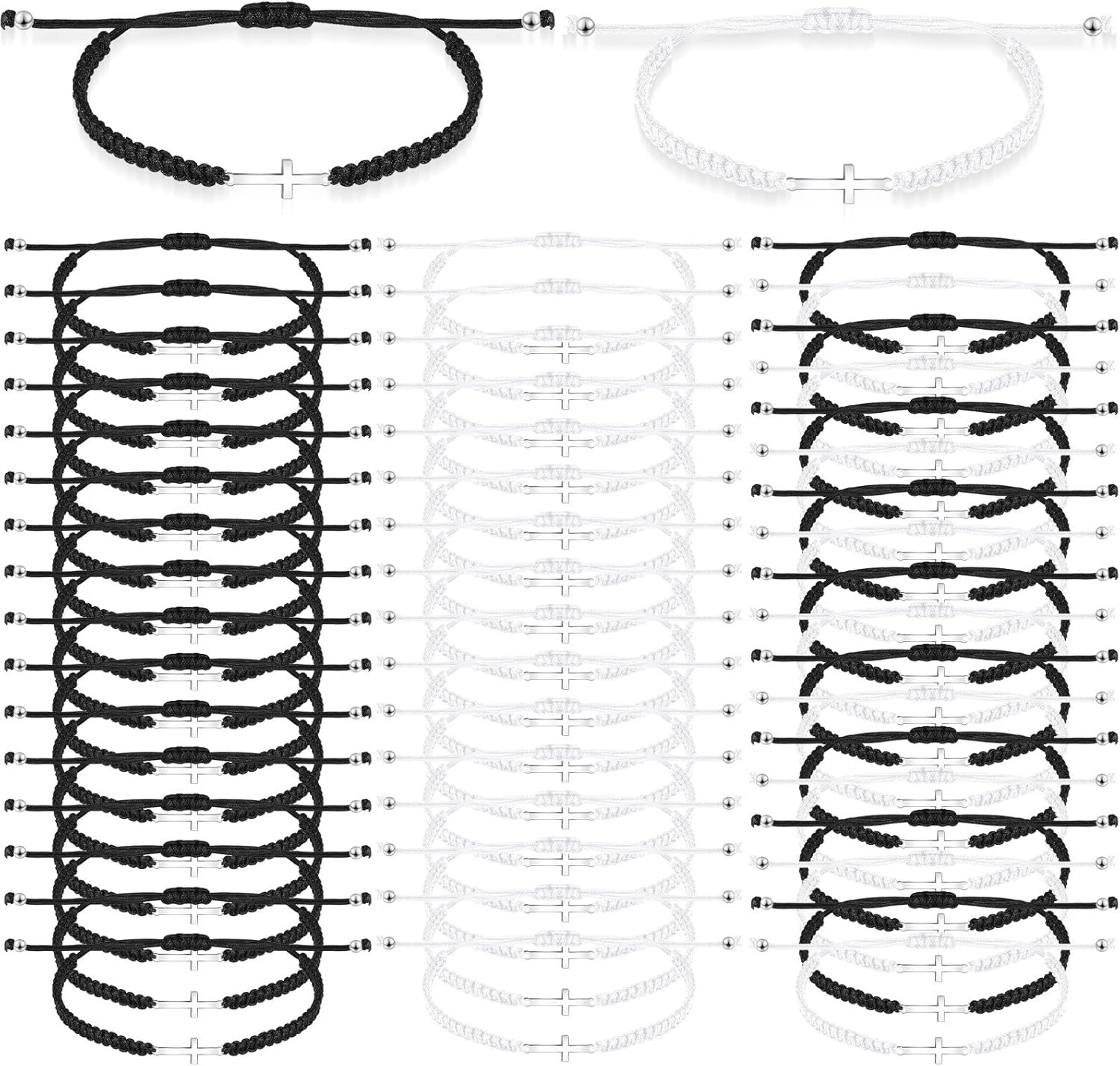 Junkin 50 Pcs Cross Bracelet Bulk Christian Religious Friendship Jesus Adjustable Matching Bracelet Rope Cord Braided Christmas Promise Jewelry Gift for Women Men