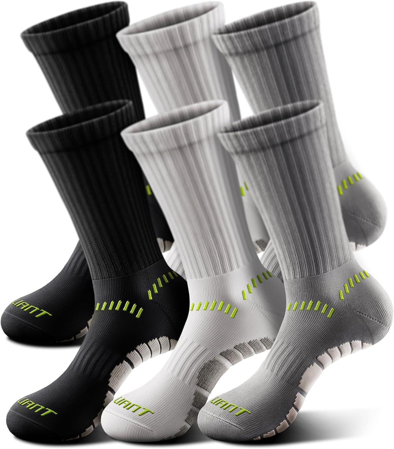 BULLIANT Men Socks, Athletic Compression Crew Socks Cushioned for Men Running Sports Hiking Fishing Arch Support