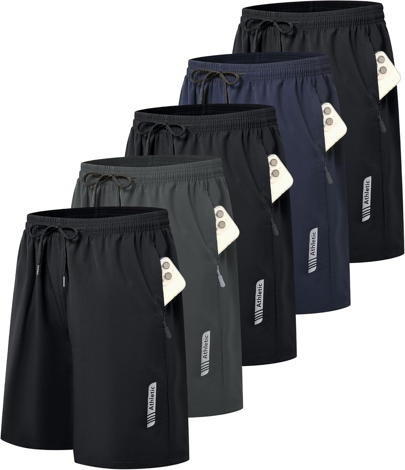 1/5 Pack Mens Athletic Gym Workout Shorts with Zipper Pockets Quick Dry Basketball Running Lightweight Shorts