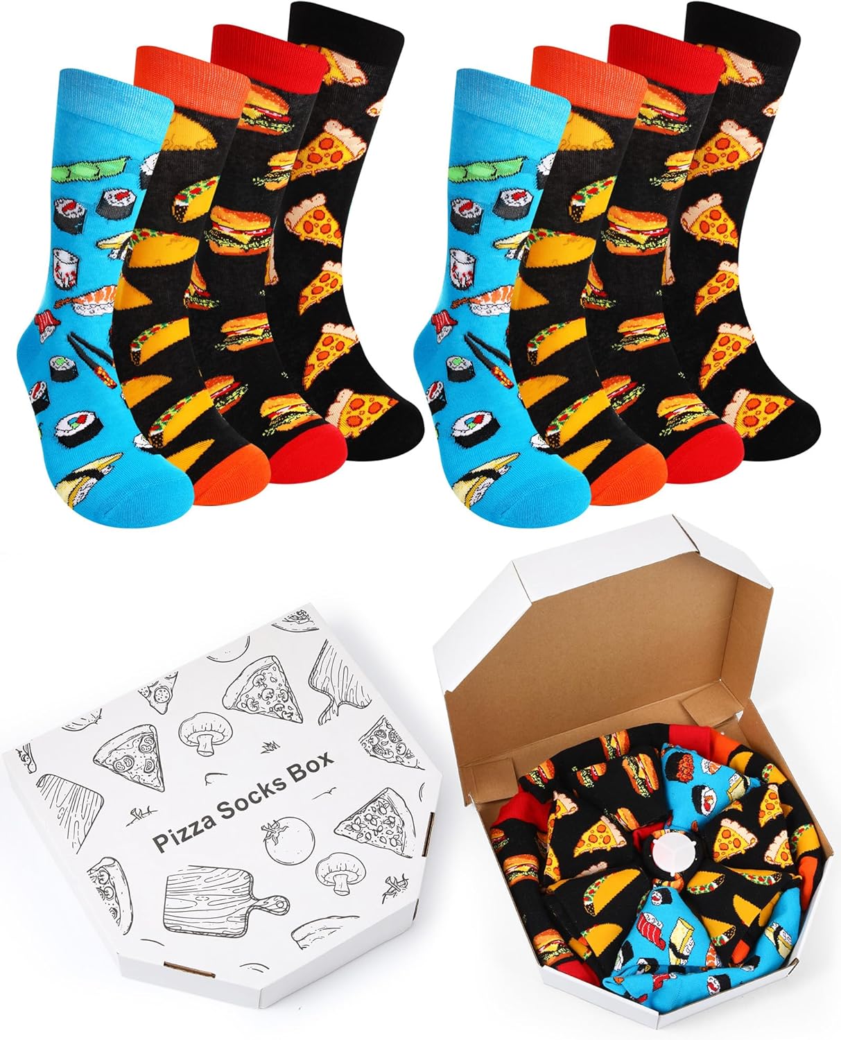 Haysandy 8 Pairs Christmas Novelty Socks Pizza Box Men Fun Patterned Dress Cute Pattern Cotton Socks Gift for Men Women