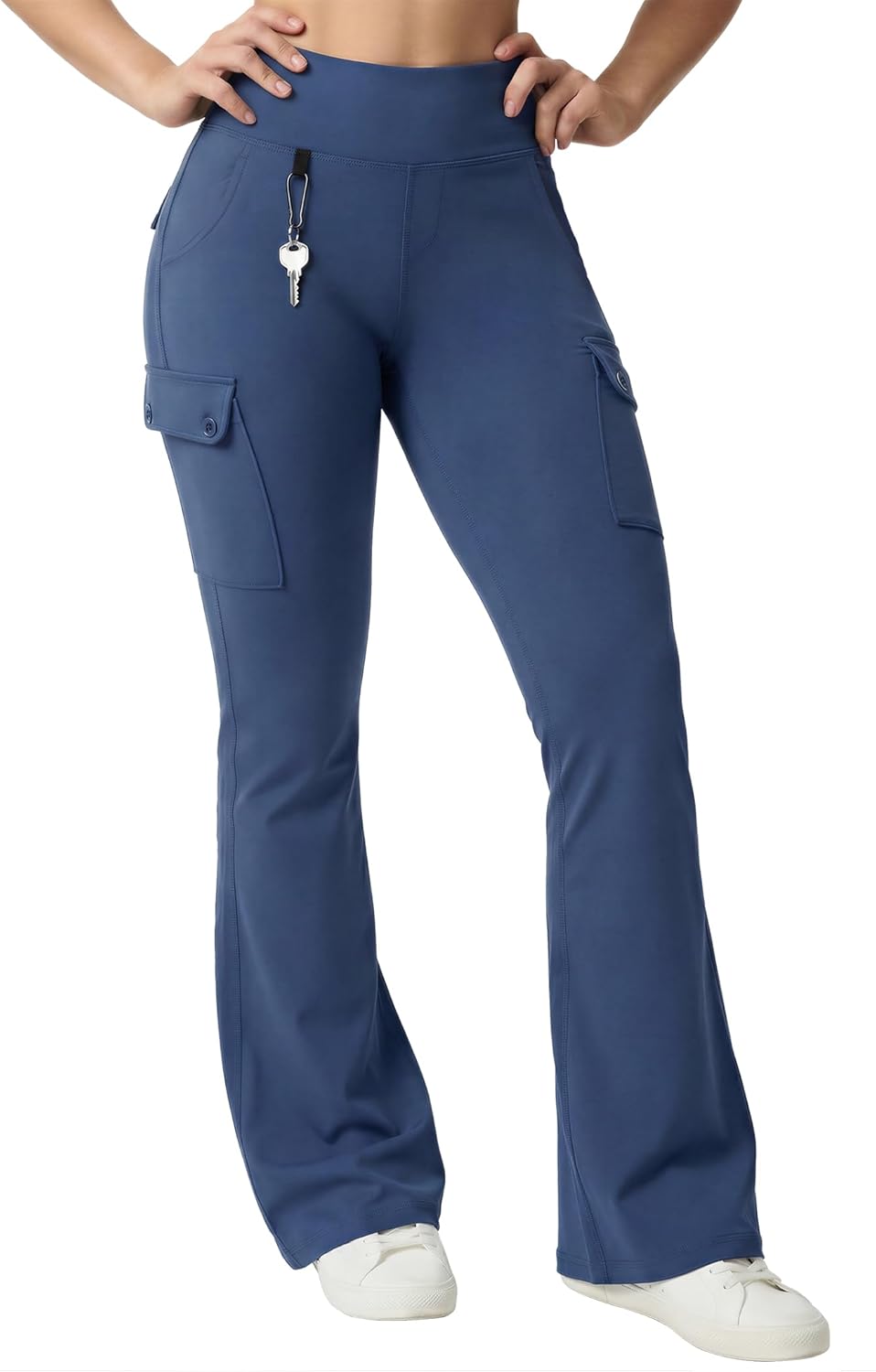 HOTSUIT Cargo-Yoga-Pants for Women 6 Pockets Stretch Work Trouser Adjustable High Waist Leggings Office Casual Travel 29''