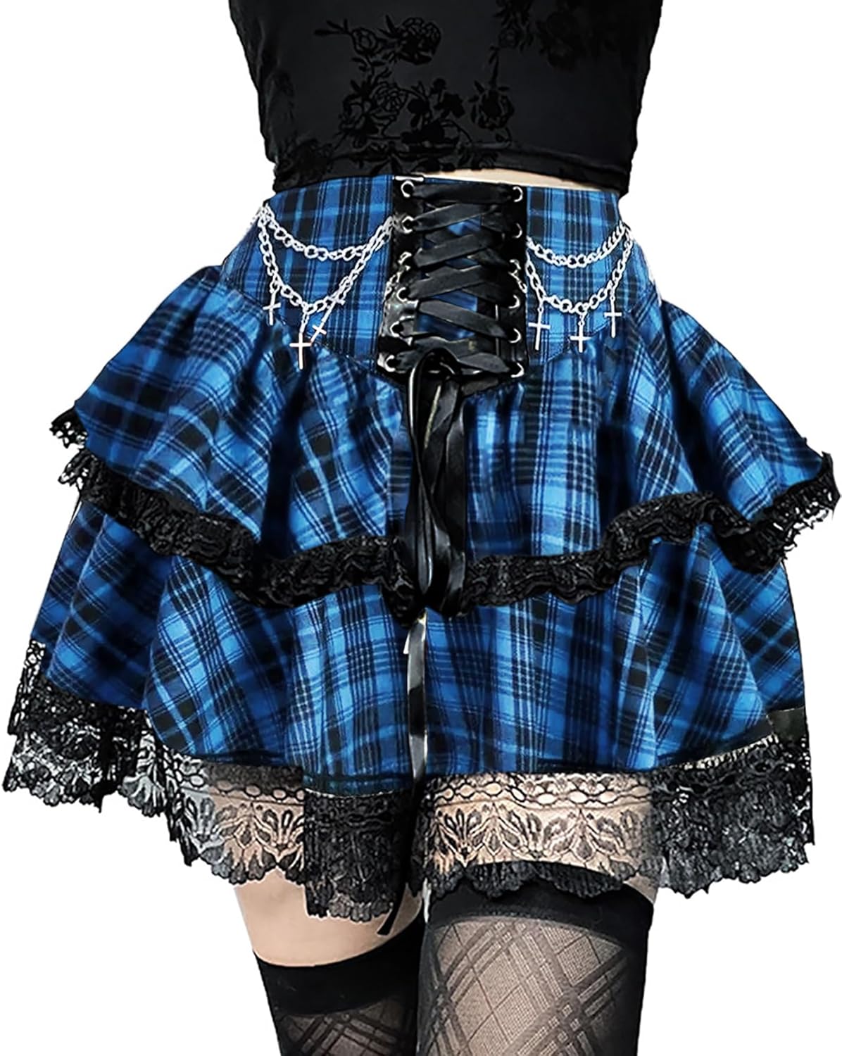 TSMNZMU Womens Gothic Mini Skirts High Waist Punk Grunge Pleated Skirts Harajuku Lolita Skirt Mall Goth Emo Skirt