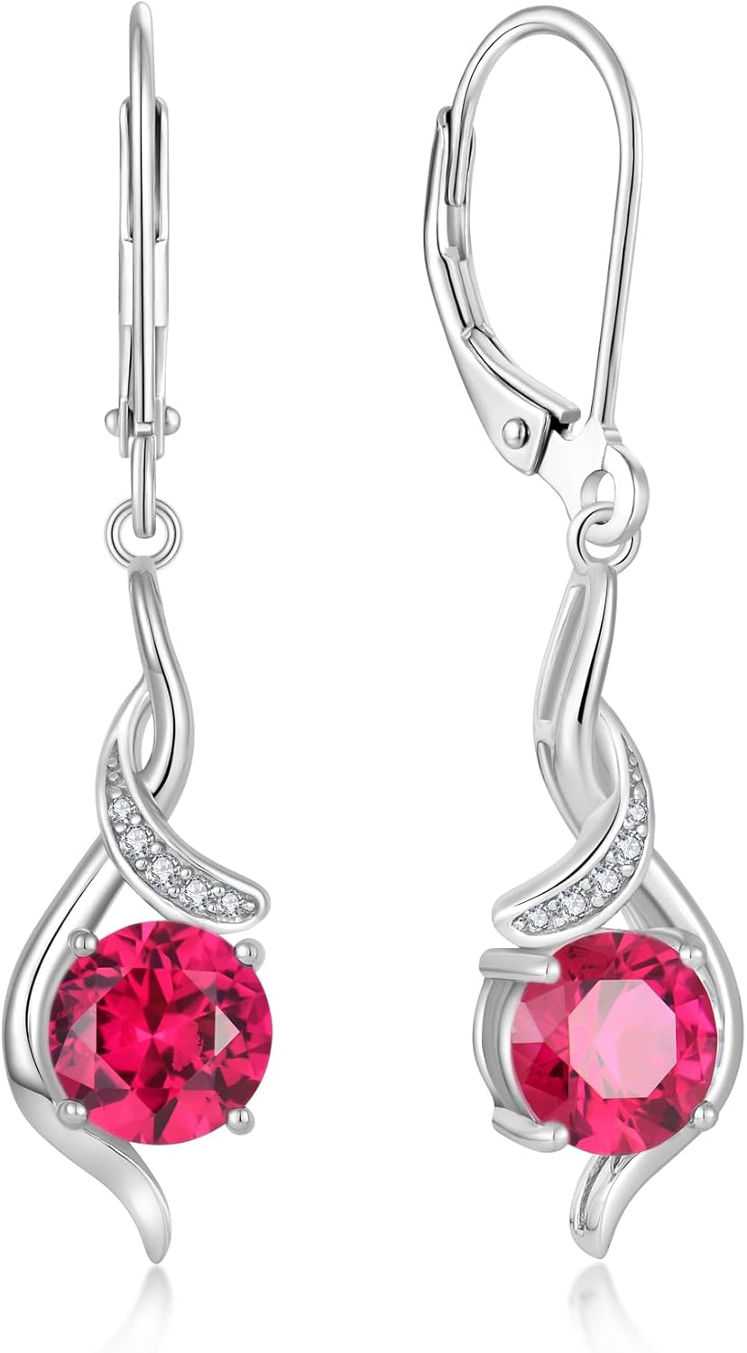 Women‘s Birthstone Earrings S925 Sterling Silver Imitation Diamond Infinity Drop Earring Leverback Jewelry Gift for Her