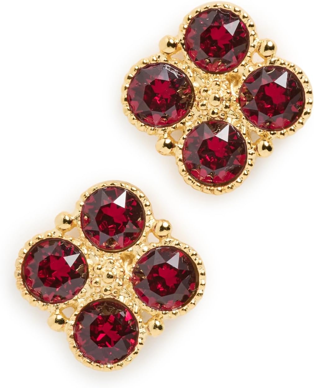 Kenneth Jay Lane Women's Gold Earrings with Four Faceted Ruby Stones