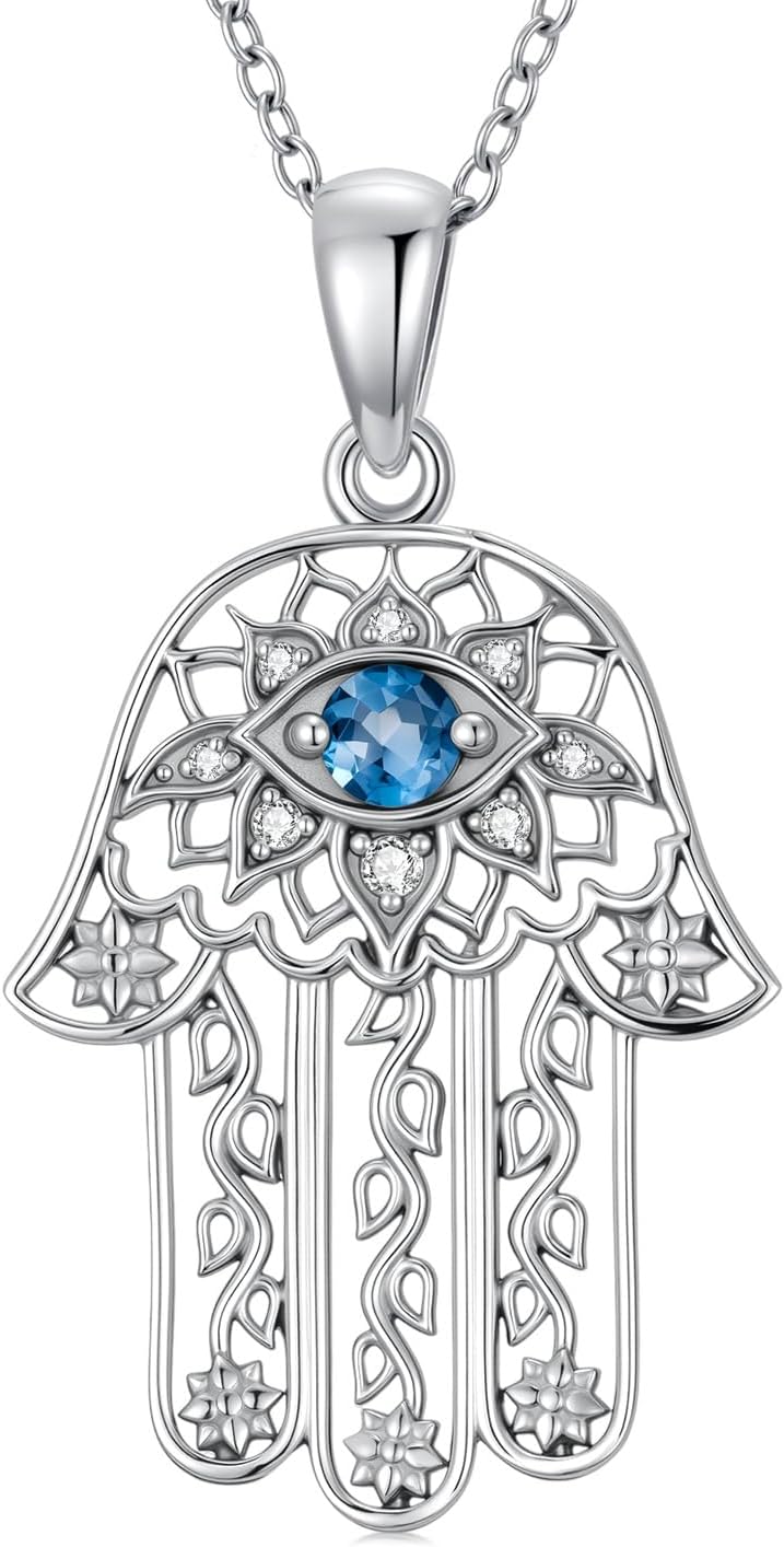 Natural Topaz Evil Eye Hamsa Hand Necklace 925 Sterling Silver Necklace Pendant Jewelry Gifts for Women