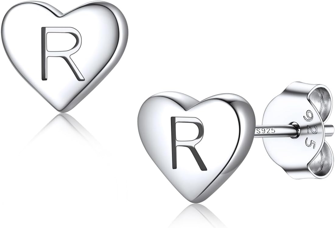 Silvora 925 Sterling Silver Heart Letter Stud Earrings for Women Initial Earring for Women with Gift Packaging