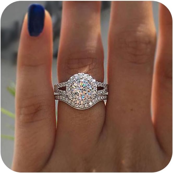 RKKOJJO 925 Sterling Silver Cubic Zirconia Stacking Ring Diamond Ring Engagement Ring Wedding Band Rings for Women