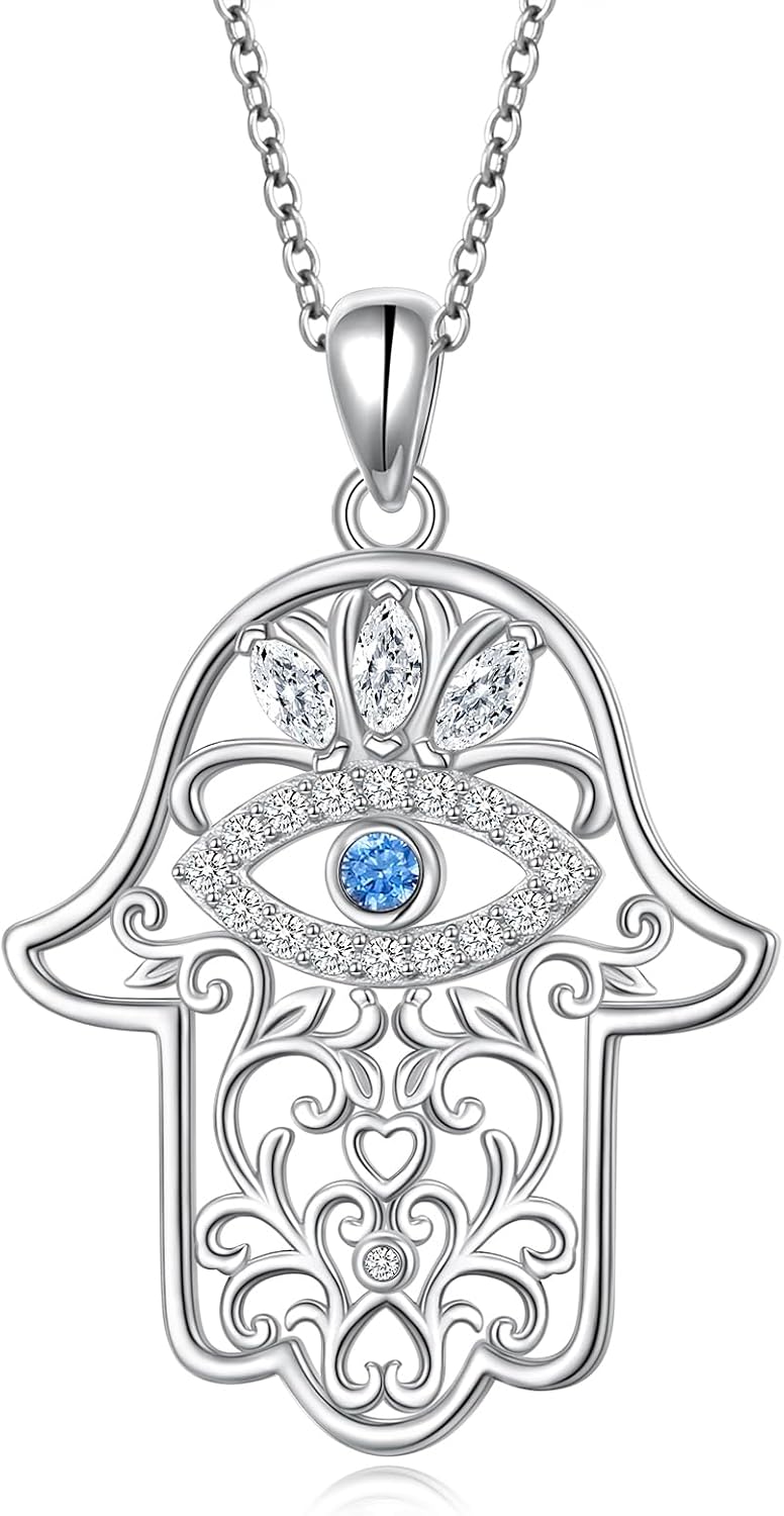 Alphm Evil Eye Hamsa Necklace for Women 925 Sterling Silver Good Luck Hand of Fatima Pendant Protection Amulet Jewelry Valentine's Day Gifts for Wife Girlfriend