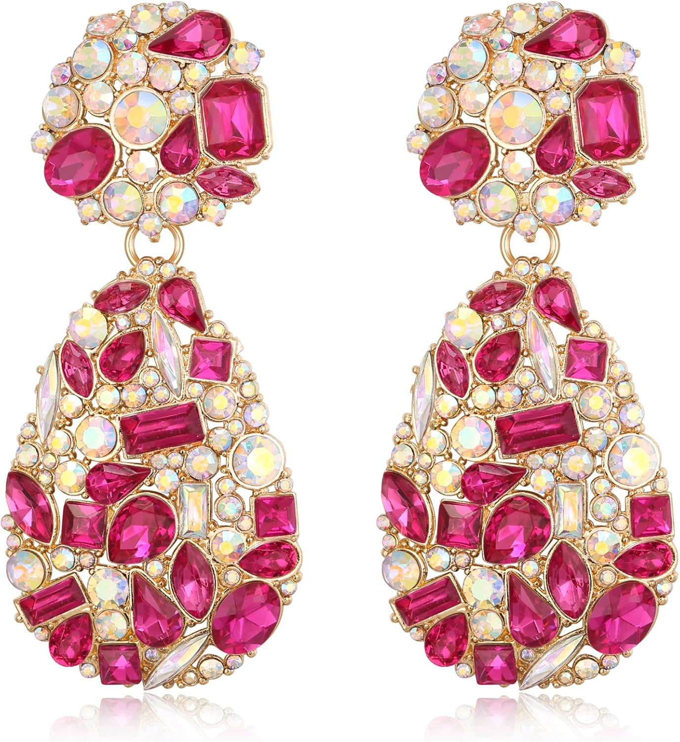EVER FAITH Glamour Rhinestone Statement Earrings, Fashion Chic Art Deco Sparkly Marquise Water Drop Crystal Dangle Pierced Earrings for Women