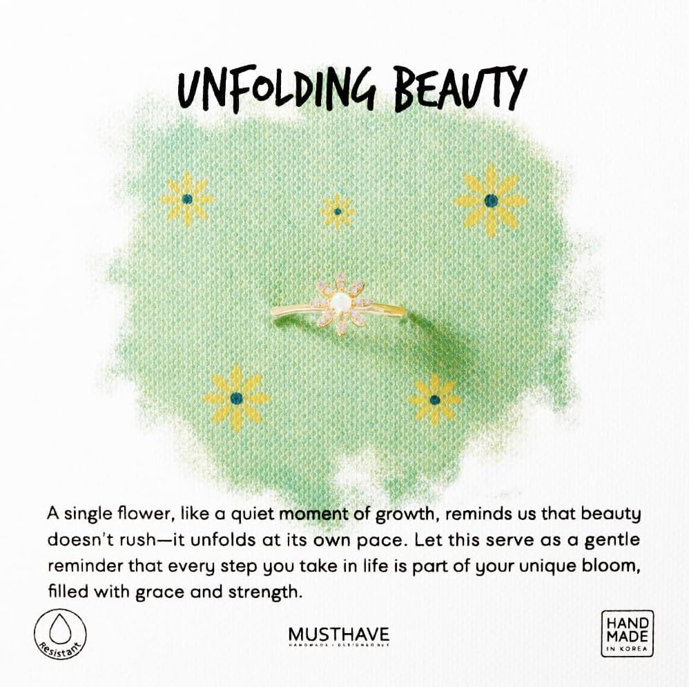 MUSTHAVE Floral Opal Adjustable Ring 18K Gold Plated Brass, Dainty Flower Opal Ring with CZ, Minimalist Jewelry Gift for Her, Dainty Jewelry Gift, Message Card, Birthday, Anniversary (Yellow Gold)