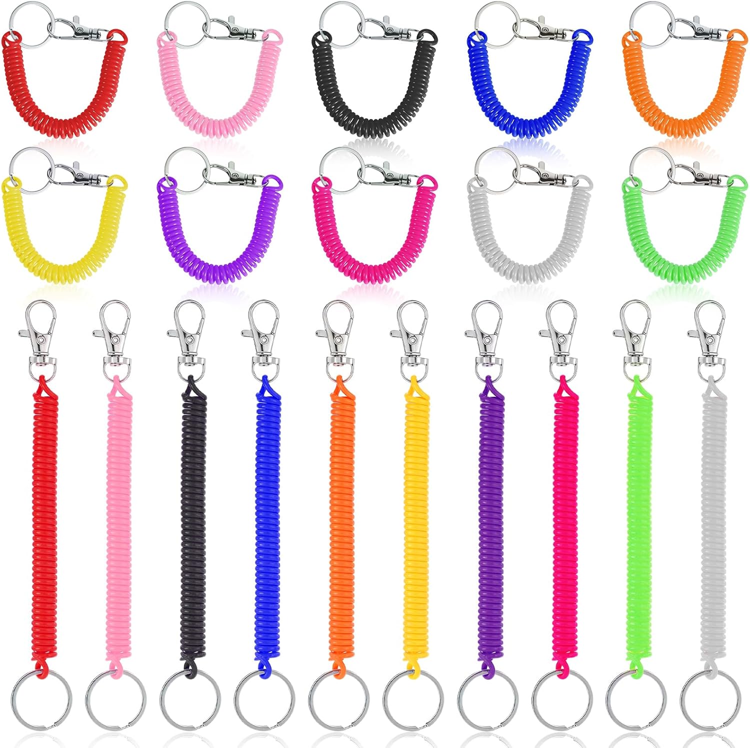 MAQUITA 100 Pcs Coil Lanyard Bulk Retractable Spring Spiral Wrist Key Chains, Stretchy Key Ring Safety Anti Lost Cord with Lobster Clasp for Keys, Wallet, Cellphone, Multi Color