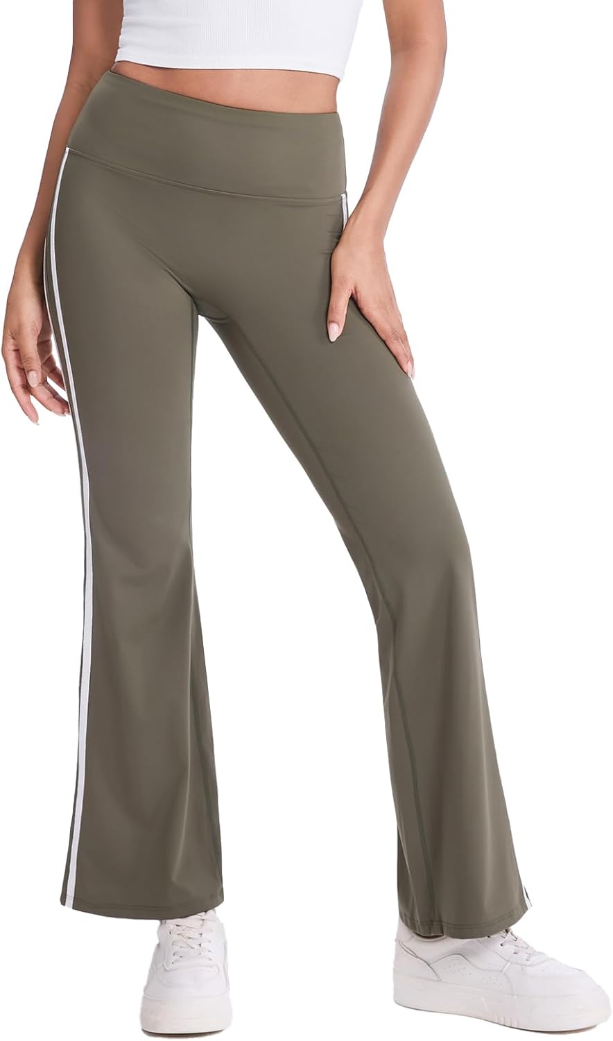 VME High Waist Yoga Wide Leg Pants with Pocket - Tummy Control Workout Running Flared-Leg Yoga Legging for Women