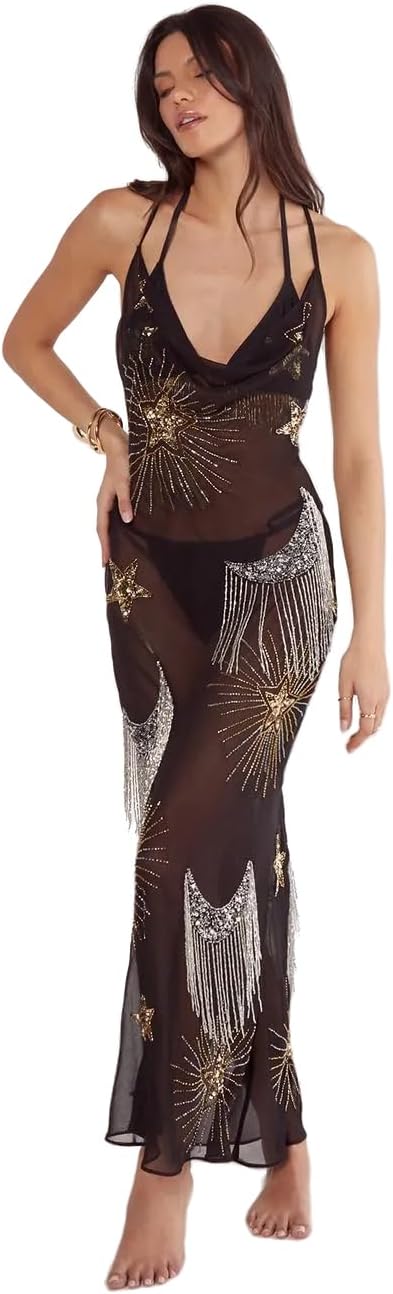 Nasty Gal Women's Celestial Embellished Tassel Detail Cowl Maxi Dress
