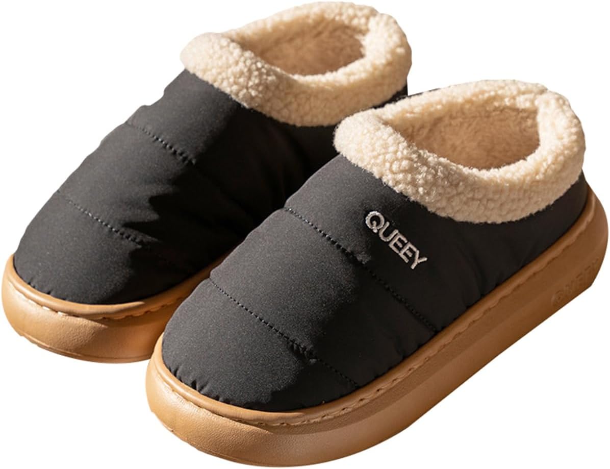 Epsion Women Men's Winter Waterproof Slippers Indoor/Outdoor House Shoes Non-Slip Cozy Fleece Lined Warm Slip-On Slipper