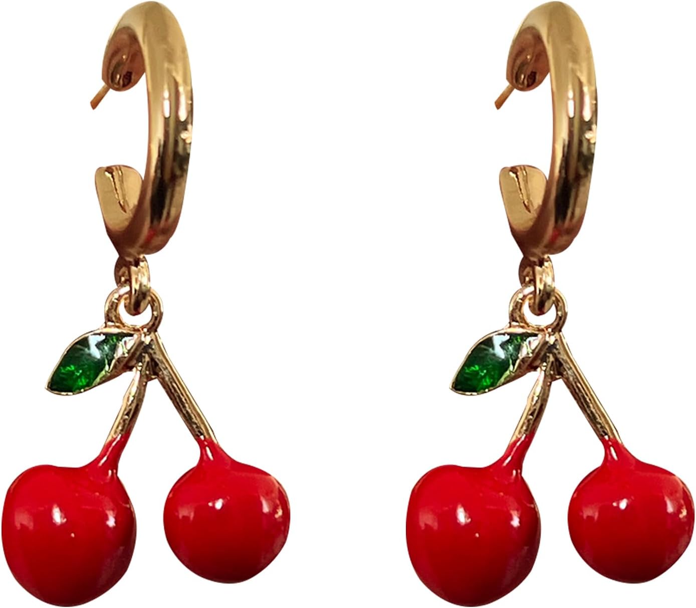 Anmpab Cute Strawberry Cherry Earrings for Women Sweet Red Fruit Cherry Strawberry Dangle Drop Hoop Earrings Jewelry Accessories