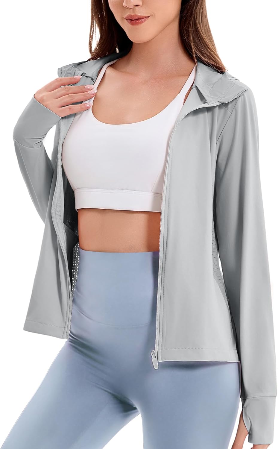 Women's UPF 50+ UV Sun Protection Hoodie Breathable Cool Jackets Athletic Long Sleeve Shirts For Outdoor Hiking