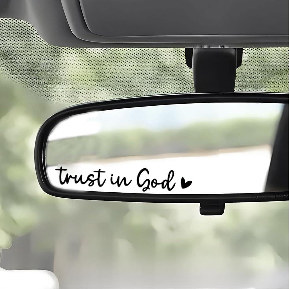 Trust in God Rearview Mirror Sticker, Christian Car Accessories, Car Stickers and Decals for Women, water bottle stickers, Mirror Decals, Valentines Day Gifts for Her (Black,White)