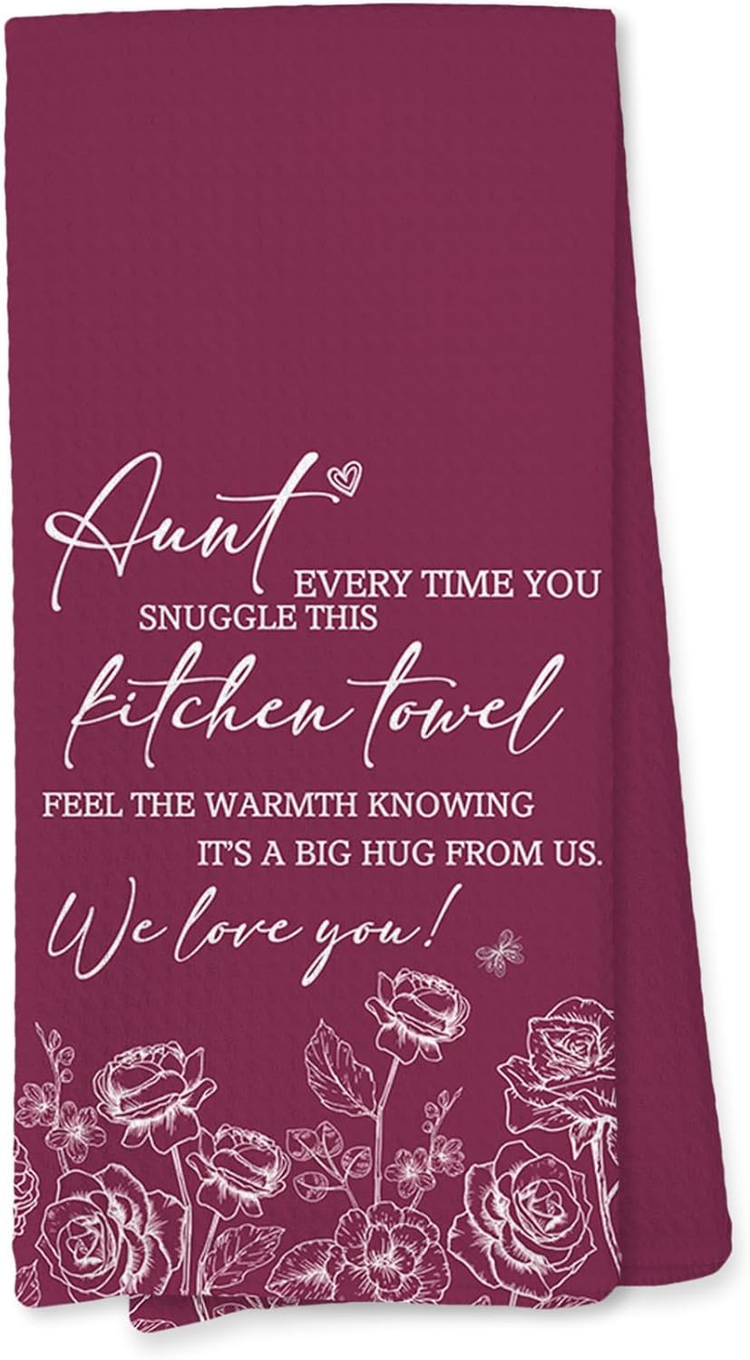 Voatok Floral Aunt Kitchen Towels, Aunt Gifts for Christmas Birthday from Niece Nephew Hand Towels, Best Auntie Gifts Dish Tea Towels for Kitchen, 16x24 Inches