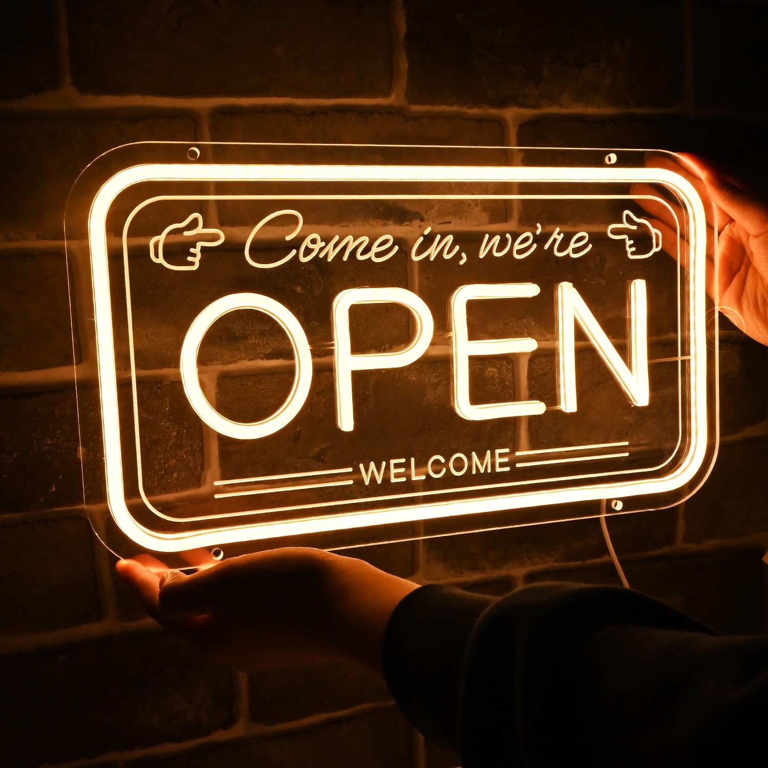 - Eye-Catching Open Neon Sign: Led open neon sign light attract more customers and ensures that your store are easily noticed during the night or day. Let your customers know that you are available and OPEN for business.